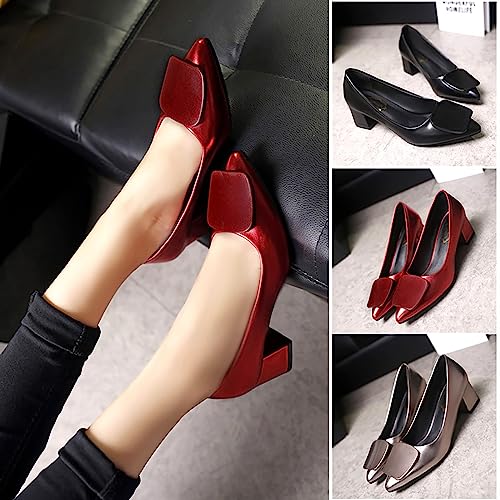 sought-after ! Women's Pointed Toe Chunky Heel Pumps Shoes,2 Inches Chunky Block Fashion Square Metal Decoration Slip On Low Heel Wedding Office Work Dress Shoes Pump Shoes