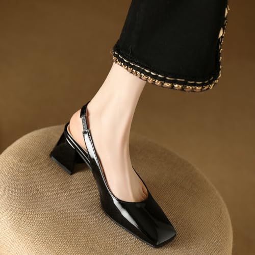 DINTAHA Womens Square Closed Toe Slingback Heels Patent Leather Low Block Heel Pumps 5