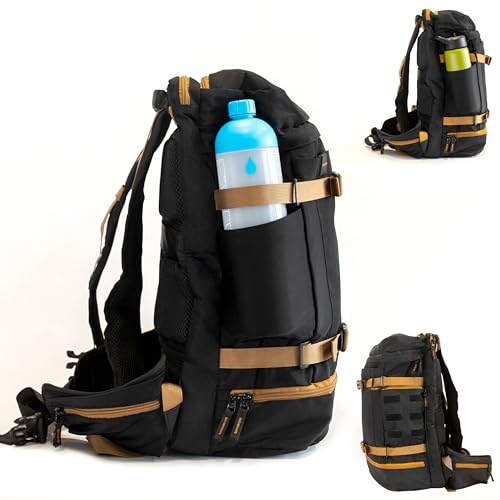 Numerous pockets for stowing all your gear, devices, water, snacks and supplies for work, school, travel or recreation.Hydration sleeve within main compartment holds up to a 3L reservoir and has exit ports for drink tube. (Reservoir not included)The padded laptop pocket protects up to a 16 laptop and features a cable pass-thru for easy device charging.Contains two hidden interior pockets for stowing your valuables as well as a side utility pocket with pen slots and velcro for your patches and a rugged, stretchy water bottle pocket on the other side.Includes a waterproof rain cover to keep everything dry. The bottom compartment is great for keeping shoes or your damp/dirty gear separate from the other compartments.The breathable, cushioned back panel and padded shoulder straps with sternum strap ensure stability and comfort. Padded, adjustable and removable waist straps with zippered pockets secure everything to your body and help distribute weight. Perfect for everyday use. excellent materials and excellent craftsmanship ensure long-lasting durability.