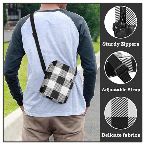 VIGTRO Small Crossbody Bag for Women Men, Checkerboard Plaid Messenger Bag Purse with Adjustable Strap, Black White Small Shoulder Bag for Travel Outdoor Sports
