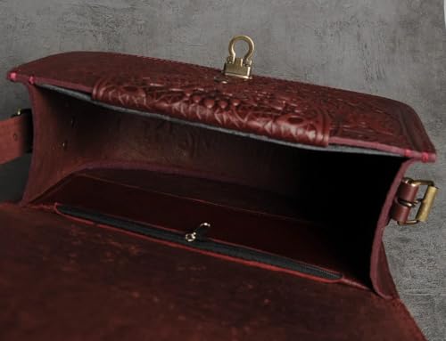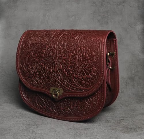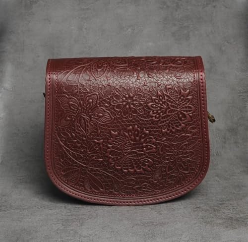 - Handmade & exceptional Design – Burgundy leather purse with embossed floral patterns for a vintage boho look.