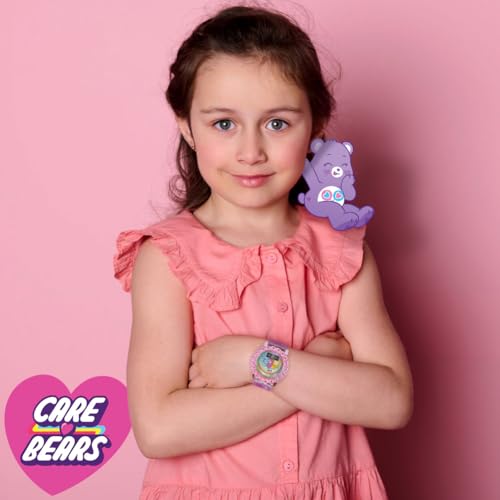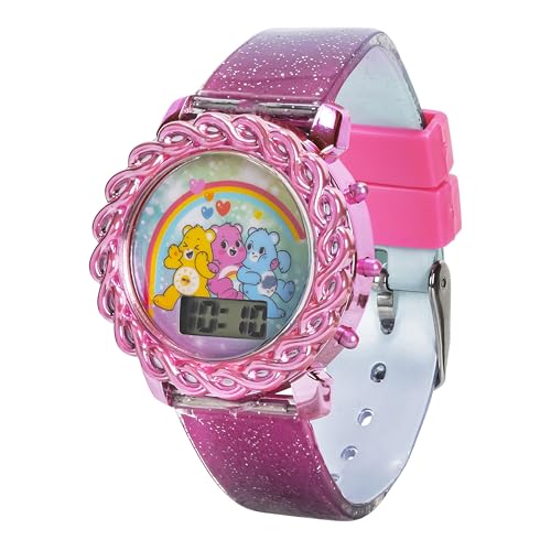 sought-after ! Care Bears Kids LCD Watch with Glitter Gradient Strap, Flashing Iridescent Bezel, Fun Digital Display, Ideal for Learning Time, Adjustable Strap, Pink and Green Design