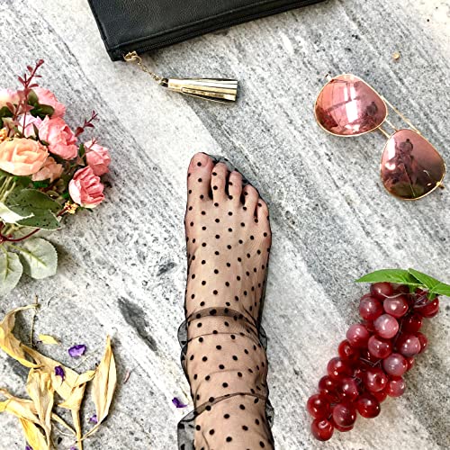 • SHEER LACE TULLE - Millennials In Motion's fairycore designer inspired luxury transparent black lace socks with polka dot pattern. These elegant thin mesh sexy socks are ideal pairing for heels or ankle boots. Wear it as a dress stocking for heels