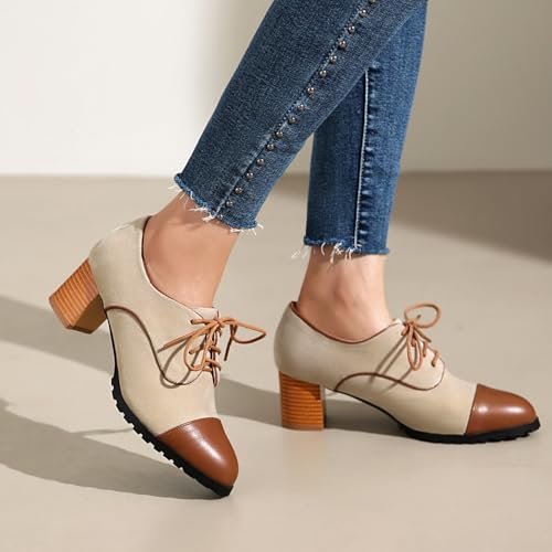 Why Choose UFEDO timeless Womens Lace Up Wingtip Pump Pointed Toe Block High Heels Oxfords?