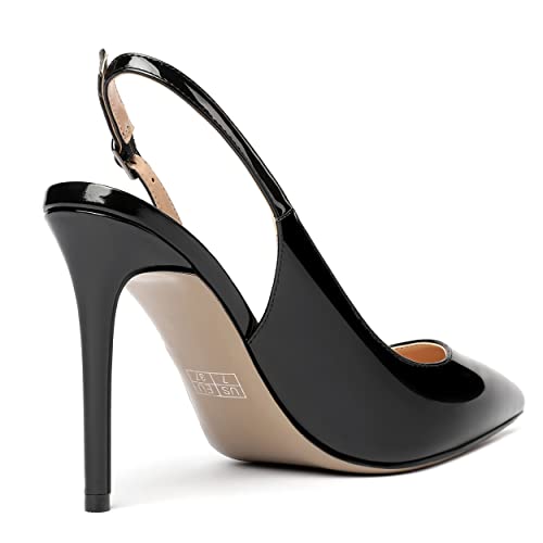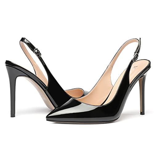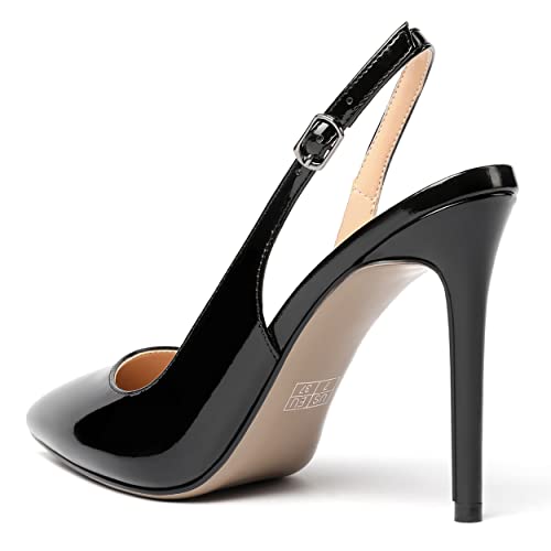 MODENCOCO Womens Evening Patent Sexy Party Buckle Slingback Pointed Toe Stiletto High Heel Pumps Shoes 4 Inch 5