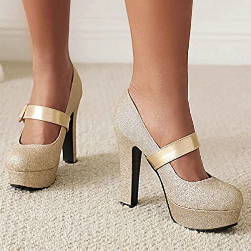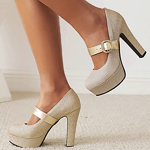 Why Choose ClassicSter Womens Glitter Mary Jane Platform Pumps Round Toe Chunky High Heel Pumps with Ankle Strap?