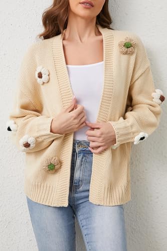Cakulo Womens 2024 Cardigan Sweaters Fall Oversized Chunky 3D Flower Open Front Knit Cardigans Trendy 2