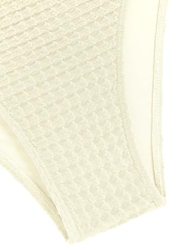More information about ZAFUL Women's Textured Bandeau Bikini Strapless Solid Color 2 Pieces Bathing Back Lace-up Suit Swimsuit (7-Beige,L)