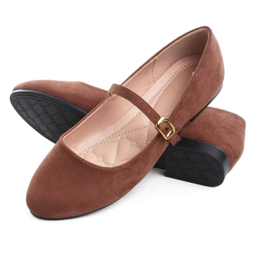 Origin: ImportedSole material: RubberOuter material: LeatherClosure type: Pull-OnWomen's round toe flat shoes are made of high-quality leather and satin fabric, aiming to provide fashion and comfort. The soft lining provides comfort and breathability, while the lightweight flat shoes prevent you from feeling tight while walking.These womens ballet flats with arch support ensure that you can wear them all day without any discomfort.This ballet flat shoe is a must-have in the wardrobe.From formal to daily wear, flats with all dress style and seasons.The mary jane flats shoes women offer a secure and soft fit. The adjustable strap provides these womens mary jane flats extra support and ensures a customized fit for every wearer.Round toe makes women's flat shoes look retro and fashionable,elegant and youthful. Perfect for walking or driving in various occasions, such as office, work, wedding, travel, shopping, walking, etc. Perfect for everyday use. excellent materials and excellent craftsmanship ensure long-lasting durability.