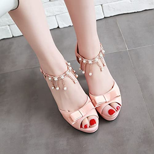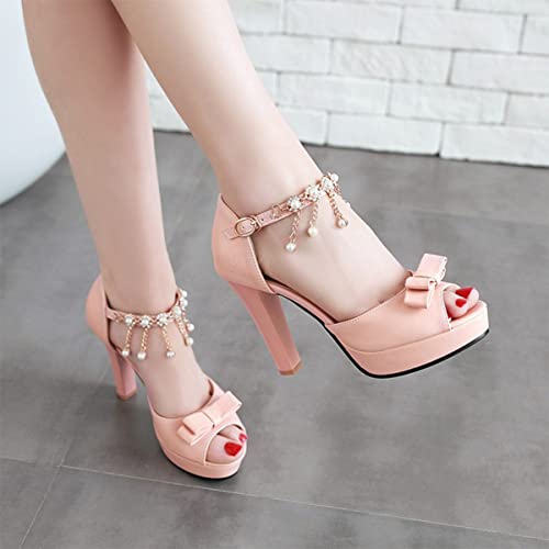 Hello Shero Women Fashion Peep Toe Platform High Chunky Thick Heel Sandals Ankle Strap d’Orsay Pendant Bowknot Dress Shoes Party Event Wedding Prom