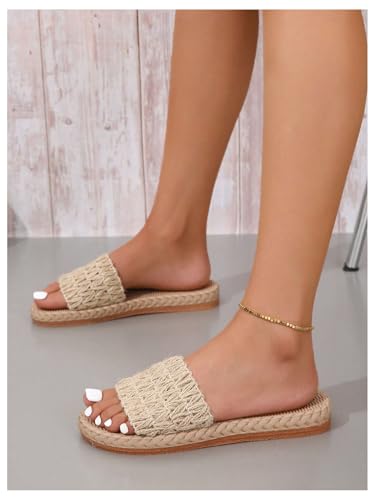 Why Choose OYOANGLE Women's Boho Linen Braided Single Band Slide Sandals Beach Vacation Straw Flat Sandal?