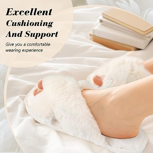 Toulite Bridesmaid Slippers Set of 6 White Fuzzy Slippers for Women Bulk Fluffy Furry Open Toe Soft House Shoes 5