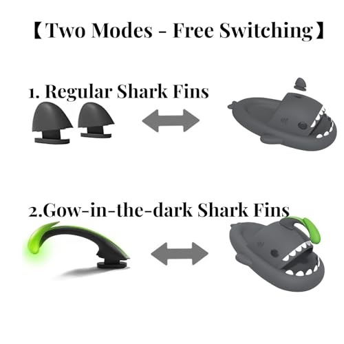 Origin: ImportedSole material: Ethylene Vinyl AcetateOuter material: Ethylene Vinyl Acetate (EVA)Closure type: Slip On❤【Angler Fish Slides】Shark Slippers Use a new glowing material. It is designed to have fins that glow like anglerfish. Able to glow in dark places. This is a very interesting and fun shoes.❤【Cute Cartoon Shark Slippers】Cute shark cloud slippers, the whole slipper is shaped like a shark, and the toe cap has two rows of white teeth. exceptional open toe design will make the shark's mouth open and close when you walk, fashion and intersting.❤【Soft And Thickened Sole 】These anglerfish shark slides are made of healthy and durable EVA material, soft and comfortable, with good cushioning and elasticity. The 4 cm/1.61-inch thick sole with a boat-shaped base.The quick rebound feature adds an extra spring to your stride, enhancing your walking experience.❤【Lightweight and Non-Slip】The sole uses a combination of geometric deepening texture and fine ball pattern to achieve double anti-skid effect, increase the friction with the ground, and make it more anti-skid. It is the best choice for this summer!❤【Non-Collision Design】Shark cloud Sliders concave sole design protects your or kids toes from kicking off table legs or thresholds, High flexibility and good elasticity Perfect for everyday use. finest materials and excellent craftsmanship ensure long-lasting durability.