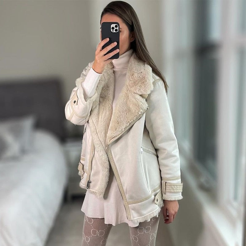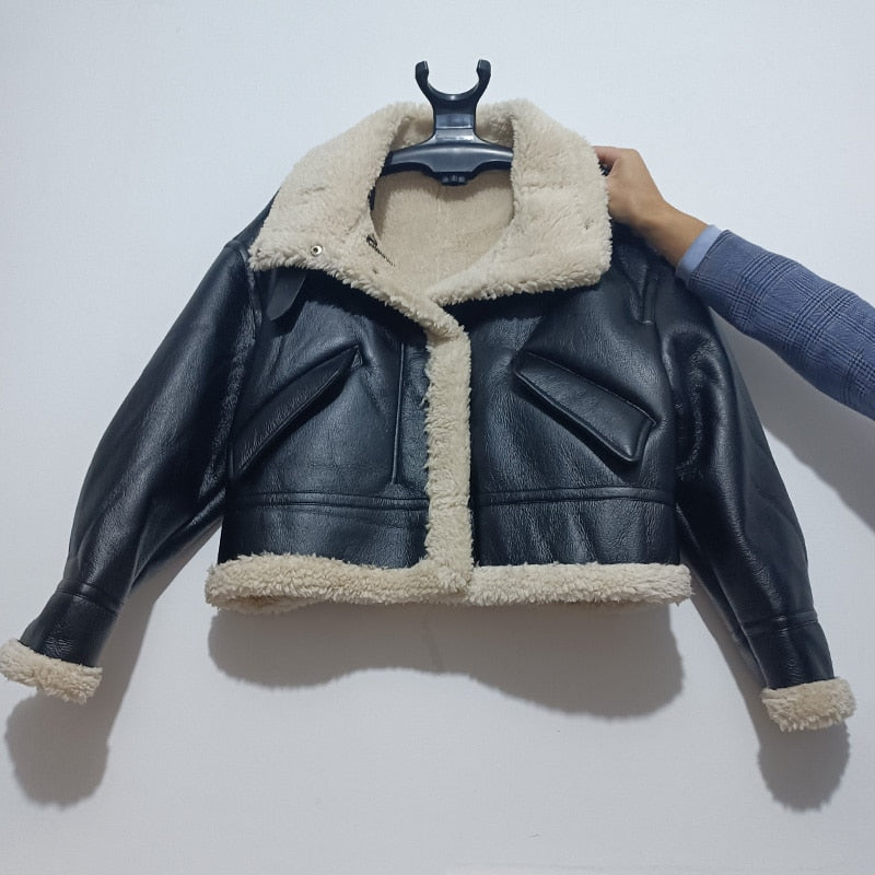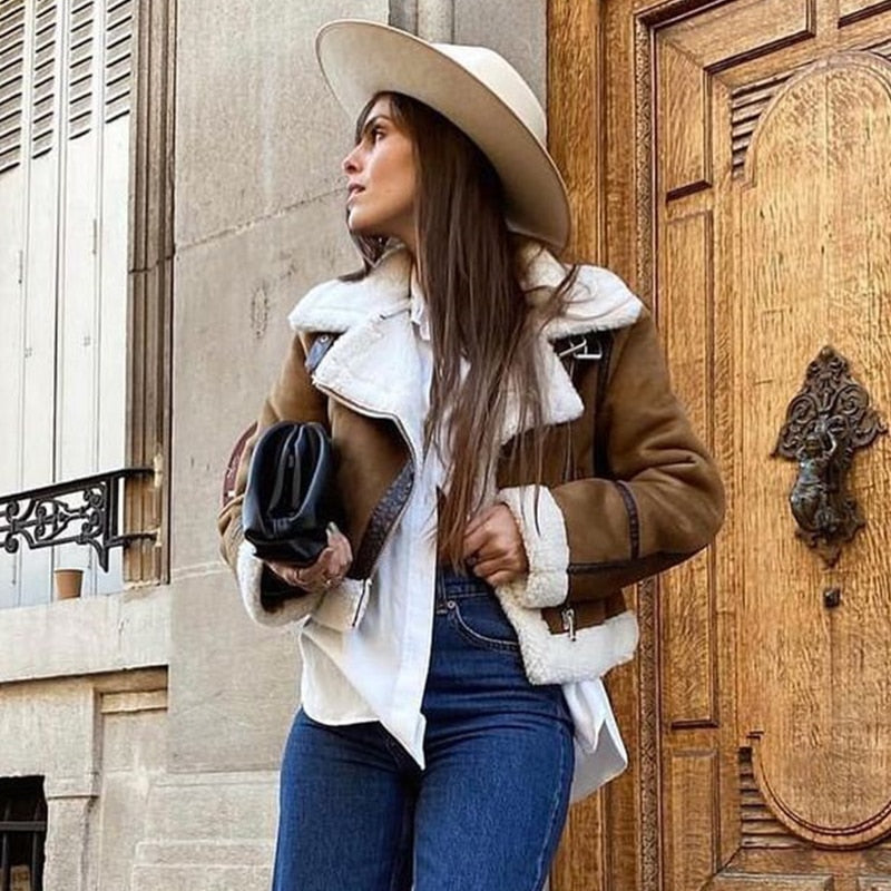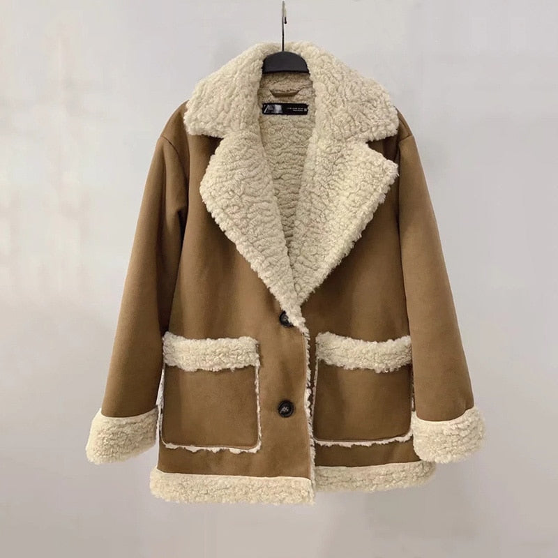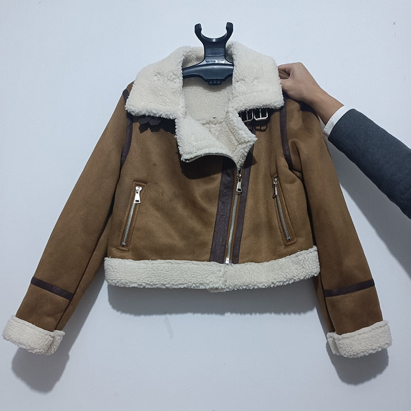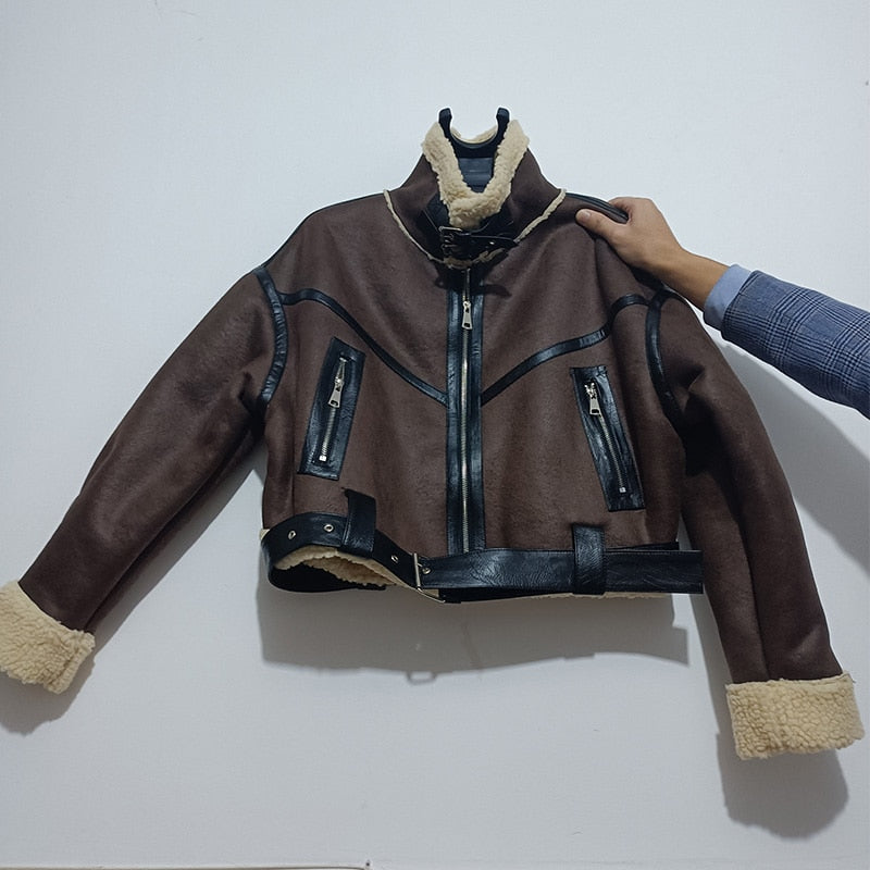 Toloer 2022 latest Fashion Suede Teddy Brown Woman Jacket Vintage Patchwork PU With Zipper Winter Coat Women Female Outwear Tops