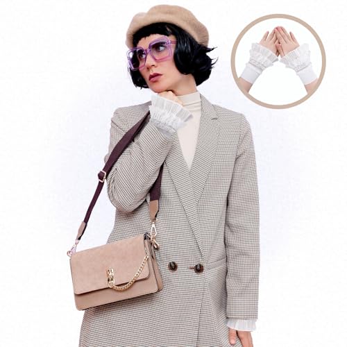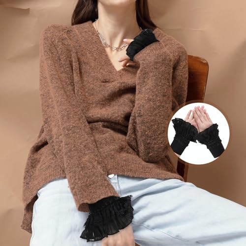 Fabric type: LaceClosure type: Elastic【Package Included】You will receive 2 pairs of ruffle wrist cuffs, one pair each in black and white, and the size of each cuff is 22X14cm/8.7X5.5 inches. The quantity can meet your daily use and replacement.【Lace Design】Ruffle cuffs are made of exquisite lace material, with delicate lace pattern and soft texture, adding elegance and romance to your clothing. The lace material has good breathability and comfort, allowing you to feel pleasant and at ease during wearing.【Removable Design】The lace wrist cuff adopts a detachable design, which is convenient for you to replace or wash at any time as needed. The two options of black and white allow you to easily match the best shape according to different clothing styles and occasion requirements.【Easy to Install】The lace cuffs are simple in design and easy to install and use. Just put the fake cuff on your wrist and it can be easily fixed. No tools are required="" during the installation process, saving time and energy.【Widely Used】Wrist cuffs costume is very suitable for matching shirts, dresses, sweaters, and shirts. In addition, it is very suitable for party theme costumes, such as Halloween costumes, pirate costumes, and historical theme costumes. Perfect for everyday use. supreme materials and excellent craftsmanship ensure long-lasting durability.