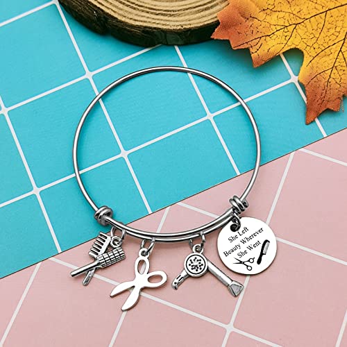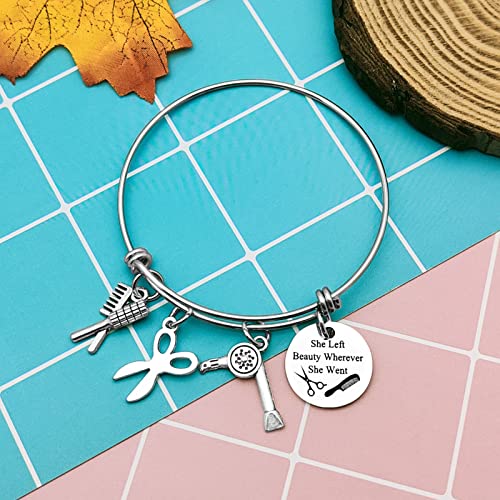 Hair Stylist Bracelet Hairdresser Jewelry for Hairstylist Gift She Left Beauty Wherever She Went Bangle Hairstylist Cosmetology Graduation Birthday Gift for Her Women Friends Hairdresser 1