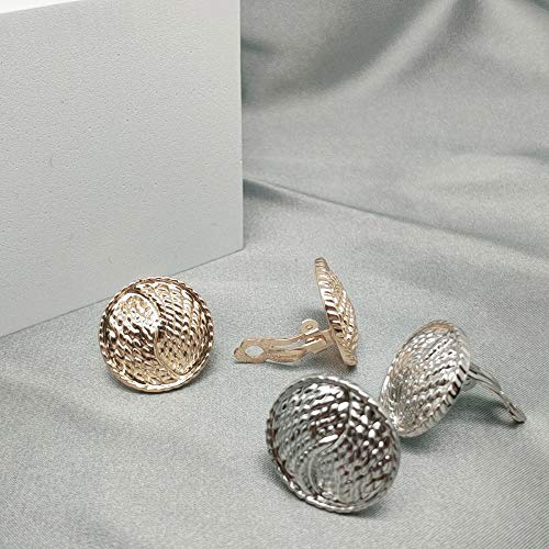 Women Gold Silver Clip Earrings Vintage Round Button Clip On Earrings Non Pierced Earrings 3