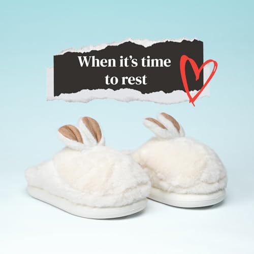 Rabbit White Women's Slippers | Non-Slip house shoes for women for Indoor cozy winter | Shed-resistant and lint-complimentary | christmas gifts for women