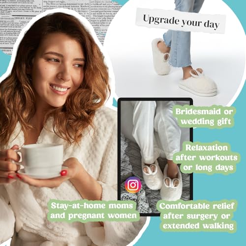 Sole material: Ethylene Vinyl AcetateOuter material: Natural RubberClosure type: Pull-OnThick EVA Sole with Anti-Slip Rubber Outsole: Designed with a durable, thick EVA sole that absorbs high impact, these bedroom slippers provide all-day comfort and stability. The anti-slip outsole ensures safe steps, making them perfect as cozy house slippers for women or thoughtful bridesmaid gifts.Velvety Padded Footbed for Extra Comfort: Our women’s slippers feature a plush, velvety padded footbed, delivering superior cushioning and support. Ideal for anyone recovering from surgery or seeking the best relaxing gifts for women, these fuzzy slippers are a must-have.Odor-Resistant & Moisture-Wicking Materials: Breathable and moisture-wicking, these fluffy slippers keep feet heated and dry without unpleasant odors, making them perfect as indoor slippers for women or for stay-home moms who need all-day freshness.Lightweight & Easy to Maintain: These lightweight slippers promote foot health by reducing stress and pressure, and they’re simple to clean—perfect for busy moms or anyone who loves low-maintenance, comfy slippers for women.Perfect for Weddings & Recovery: Whether as preppy bridesmaid slippers or post-surgery recovery shoes, these women’s slippers combine elegance and comfort. Ideal as Christmas slippers, top gifts for women, or stay-at-home essentials, they’re perfect for pampering tired feet. Perfect for everyday use. finest materials and excellent craftsmanship ensure long-lasting durability.