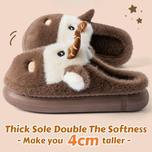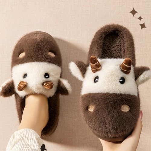 Cow Fuzzy Animal Slippers for Women & Men, Womens Mens Cute Fluffy Plush cozy Memory Foam House Slippers