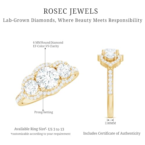 Certified Lab Grown Diamond 3 Stone Engagement Ring, Ef-Vs Quality, Past Present Future Diamond Ring - Gift For Women 2