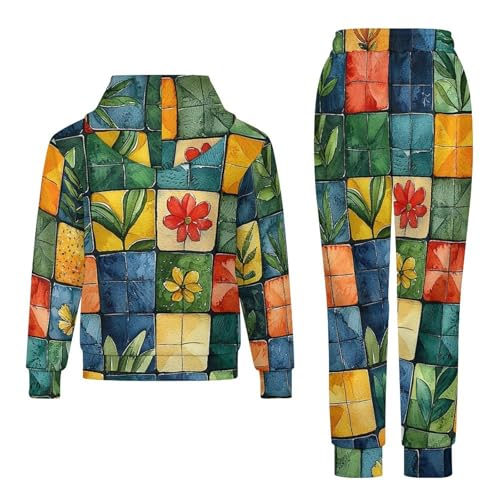Boys Girls Pullover Hoodie and Pants Outfit 2PCS Set Sweatshirt for Kids, Brazilian Patterns Watercolor