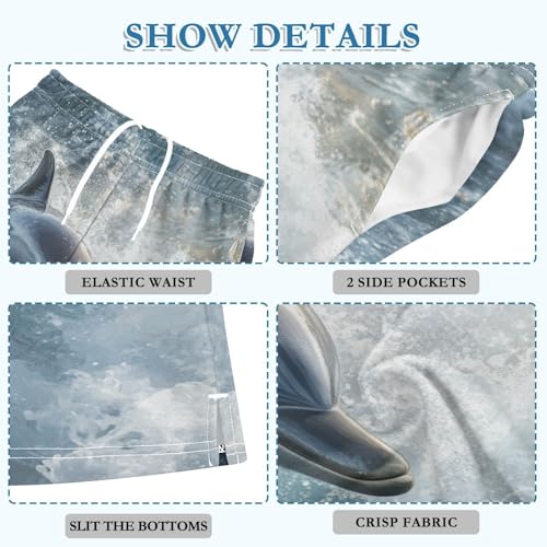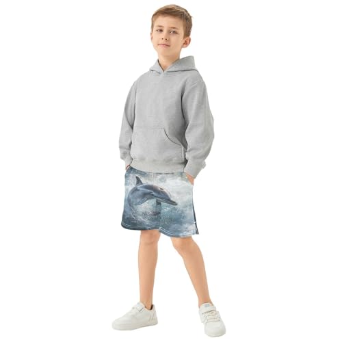 DOMIKING Sliver Dolphin Water Kids Shorts Pull-on Boys Shorts with Elastic Waist Casual Athletic Pants for Summer Outdoor