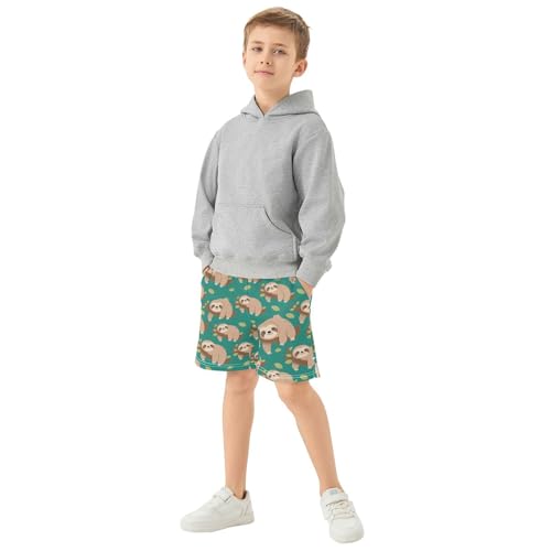 Cute Sloth Tree Branch Boys Active Basketball Shorts Lightweight Summer Sports Shorts with Pockets for Kids