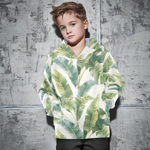 KLL Tropical Banana Leaf Toddlers and Girls' Sweatshirts Long Sleeve Hooded Pullover Hoodies Kangaroo Pocket