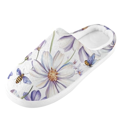 JUNZAN Beauty Osteospermum White Womens Cotton House Slippers Closed Toe Memory Foam Foam Slippers for Hospital Funny Presents 6-7