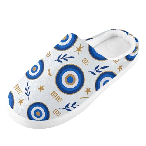 Greek Evil Eye Occult Womens Cotton House Slippers Lightweight Memory Foam Home Slippers for Spa Christmas Presents 6-7
