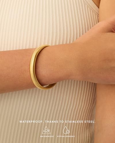 PAVOI Stainless Steel 14K Gold Plated Waterproof Flexible Stretch Chunky Bangle for Women | Cobra Bracelet 6