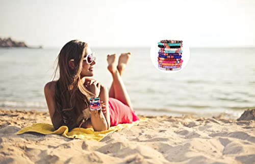12pcs Friendship Bracelets Beaded Bracelets Heishi Bracelet Cute Bracelets Stack Vinyl Clay Disc Bead Surfer Stretch Summer Beach Bracelets For Women Preppy Bracelets