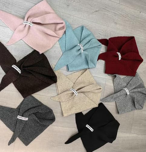 Hycurey Women's Wool Triangle Scarf y2k Thick Knit Pashmina Shawl Wrap Solid Color Fall Winter Classic Causal Bandana Collar 5