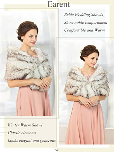 sought-after ! EARENT Women's Faux Fur Shawls and Wraps 1920s Bride Wedding Fur Scarf Bridal Fur Stoles for Brides and Bridesmaids (White+Brown)
