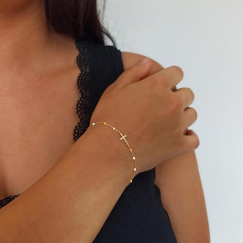 CASDAN 9pcs Cross Bracelets for Women 18K Gold Plated Cross Bracelets Adjustable Dainty Cross Bracelet Stainless Steel Christian Religious Jewelry