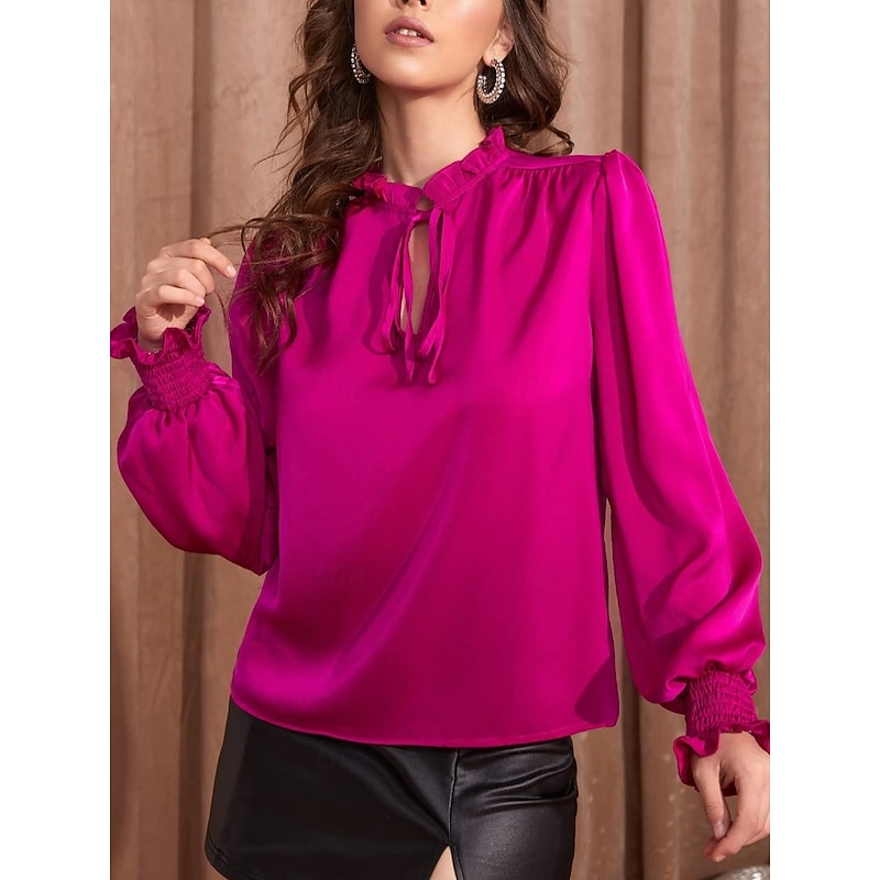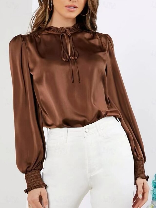 This Women's Shirt Elegant Dressy Satin Solid Color Business current Casual Long Sleeve Turtleneck Regular Tops Work Formal Wear Lace up Ruffle Brown Rose Pink Summer Spring combines elegant design with practical functionality. Every detail has been carefully considered to ensure you get the best possible experience. The first-class construction means this product will serve you well for years to come.