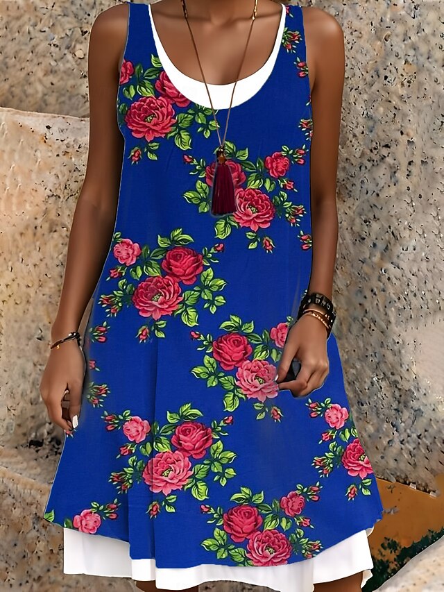 sought-after ! Women's Midi Dress Tank Dress Fashion enduring Outdoor Daily Weekend Regular Fit Graphic Sleeveless Crew Neck Royal Blue Summer Spring Fall