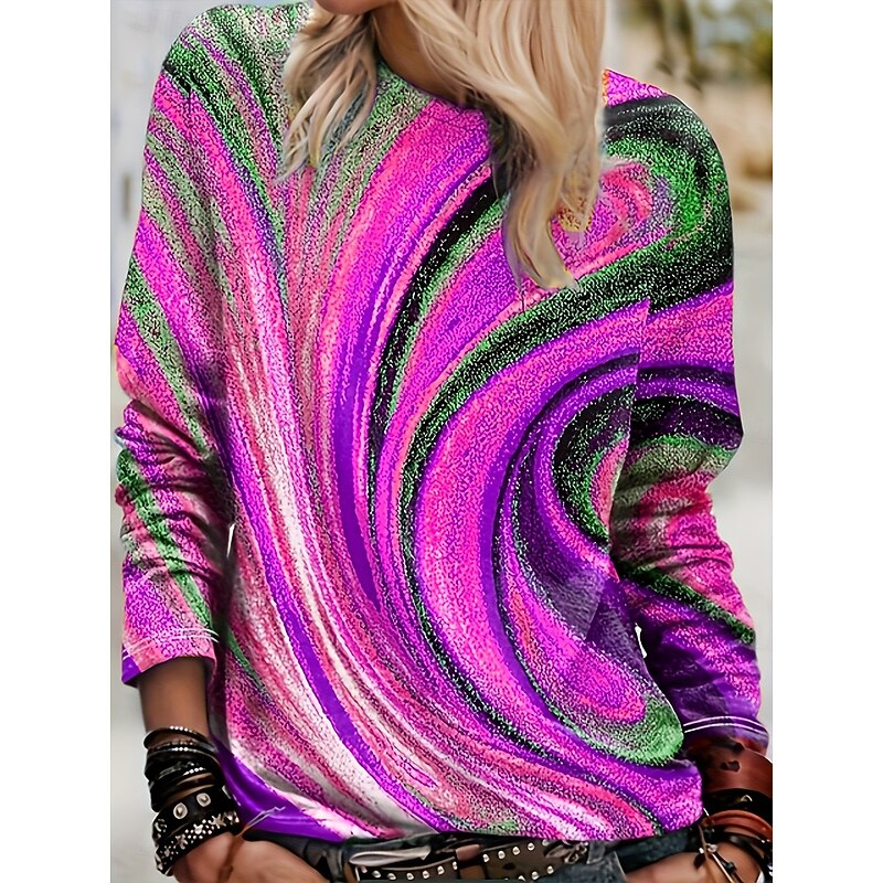 This Women's T Shirt Graphic Geometric Vintage chic Casual Long Sleeve Crew Neck Regular Tops Daily Print Blue Purple Orange Green Gray Spring Fall Winter combines elegant design with practical functionality. Every detail has been carefully considered to ensure you get the best possible experience. The finest construction means this product will serve you well for years to come.