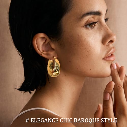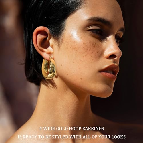 EXGOX Gold Hoop Earrings for Women Sterling Silver Post Hoops Earrings for Women Wide Thick Silver Hoop Earrings Hypoallergenic Lightweight 14k Real Gold Plated Hoop Large Earrings (25/30/40/50MM)