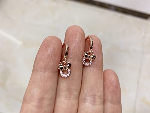 sought-after ! Small Mouse Dangle Hoop Earrings for Women 925 Sterling Silver Pink Cubic Zirconia Charm Animal Mice Huggie Sleeper Hoops Cartilage Hypoallergenic for Sensitive Ear Jewelry (Rose-Gold-Toned)