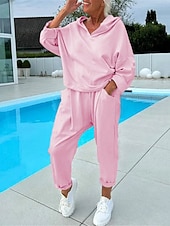 More information about Women's Loungewear Set Hoodie Joggers Cream Solid Color Casual relaxing Home Wear V-neck Long Sleeve Elastic Waist Full Size whole-season Fashion Apparel Fall Winter