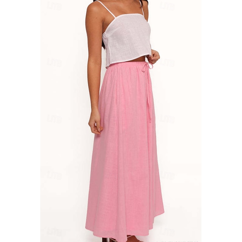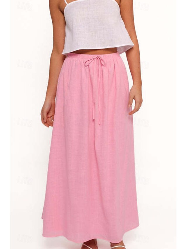 This Women's Linen-Inspired Skirts Casual Maxi Mid Rise Plain Drawstring Micro-elastic Vacation Street White Pink Summer Cotton combines elegant design with practical functionality. Every detail has been carefully considered to ensure you get the foremost possible experience. The premium construction means this product will serve you well for years to come.