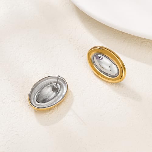 Material: Stainless SteelMetal type: Stainless SteelBack Finding: Clutchless, Push BackEarring design: StudGem type: No GemstoneMixed Metal Earrings:These Chunky Earrings are Trendy/up-to-date and easy to Match, Suitable for both Work and Out on a Date.Goes with all Your Jewelry and Outfit Because of the Two Tones.Material:The Two Tone Earrings for Women are Crafted with High-quality Stainless Steel and 18K Gold Color.Hypoallergenic,Non Tarnish, Durable and Sturdy, High Polished Surface, Very Smooth and Comfy to Wear and Easy to CleanChunky Silver Earrings:The Bold Gold Earrings for Women Look so Classy! You will Get Many Compliments Wearing ThemPerfect for Any Occasion:These Gold Statement Earrings for Women are Vintage,Retro and Trendy,You can Match Them as You Like, and Suitable for Daily Wear and Any Special Occasion.You can Give it to Your Mothers, Lovers, Lriends or Yourself on Christmas, Thanksgiving, Valentine's Day, Birthday or Other FestivalAfter Sales Services:100% Satisfaction and Money Back, 60-Day No-Risk Return Policy. Perfect for everyday use. supreme materials and excellent craftsmanship ensure long-lasting durability.