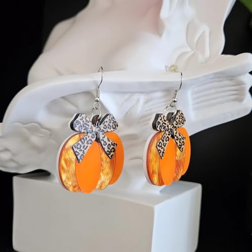 Why Choose Fall Pumpkin Leopard Print Bow Dangle Drop Statement Earrings for Women Acrylic Bowknot Ribbon Autumn Thanksgiving Hook Hoop Earring Cute Jewelry Gifts Halloween Festival?