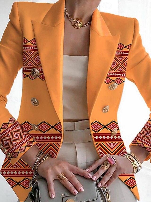 sought-after ! Women's Blazer pleasant Breathable Pocket Buttons Print Fashion Casual Geometric Office Street Casual Daily Wear Single Breasted Regular Turndown Regular Fit Long Sleeve Outerwear Pink Purple