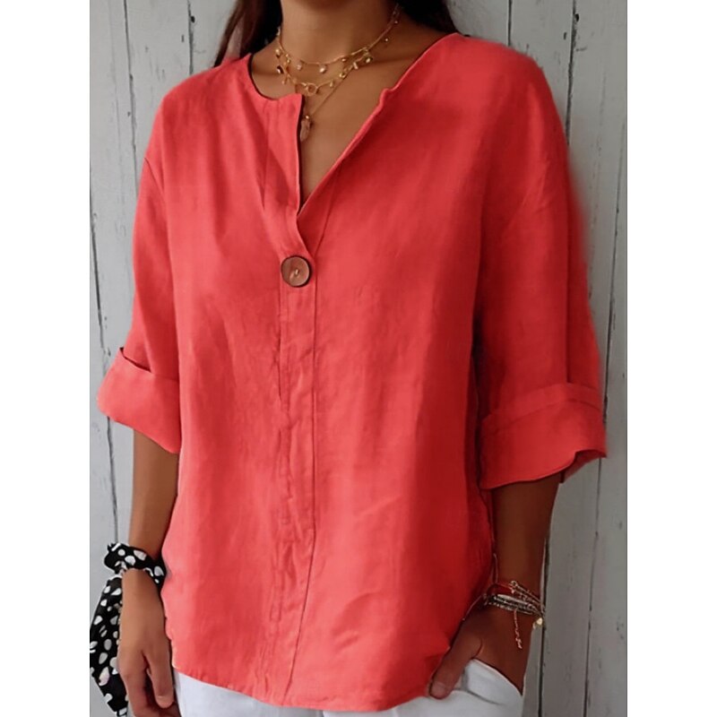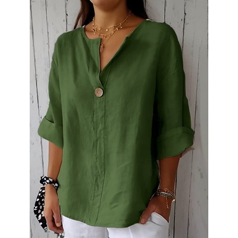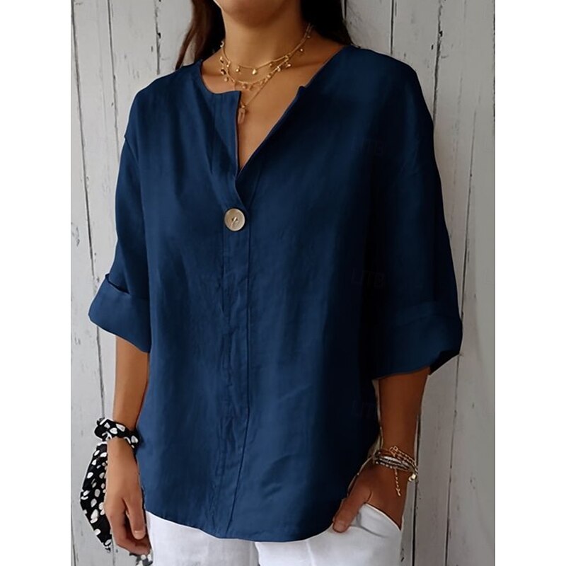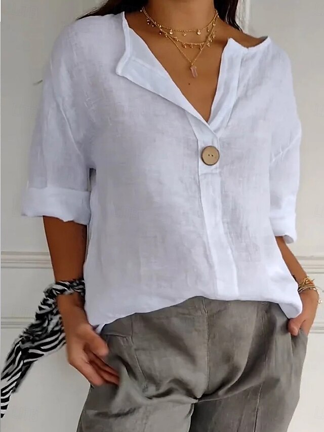 sought-after ! Women's Cotton Linen Mini Dress Shirt Dress Basic Casual Vacation Daily Regular Fit Plain 3/4 Length Sleeve V Neck Black White Red Green Summer