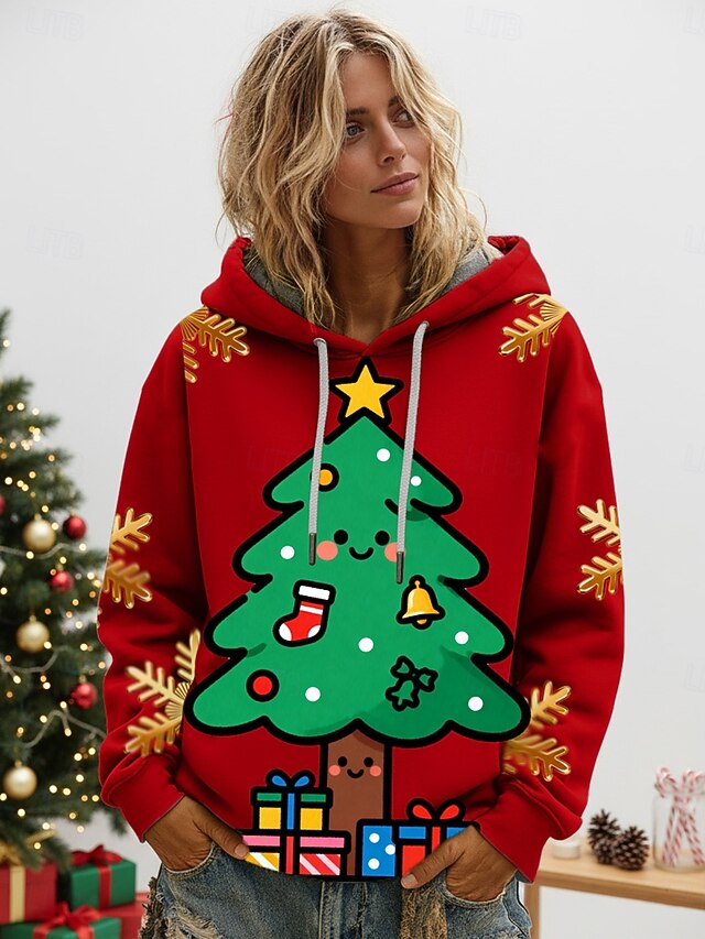 This Women's Pullover Hoodies Christmas Tree Fashion Streetwear Casual Long Sleeve Hooded Regular Tops Dailywear Casual Drawstring Print Black Red Blue Green Spring Fall Winter combines elegant design with practical functionality. Every detail has been carefully considered to ensure you get the best possible experience. The splendid construction means this product will serve you well for years to come.