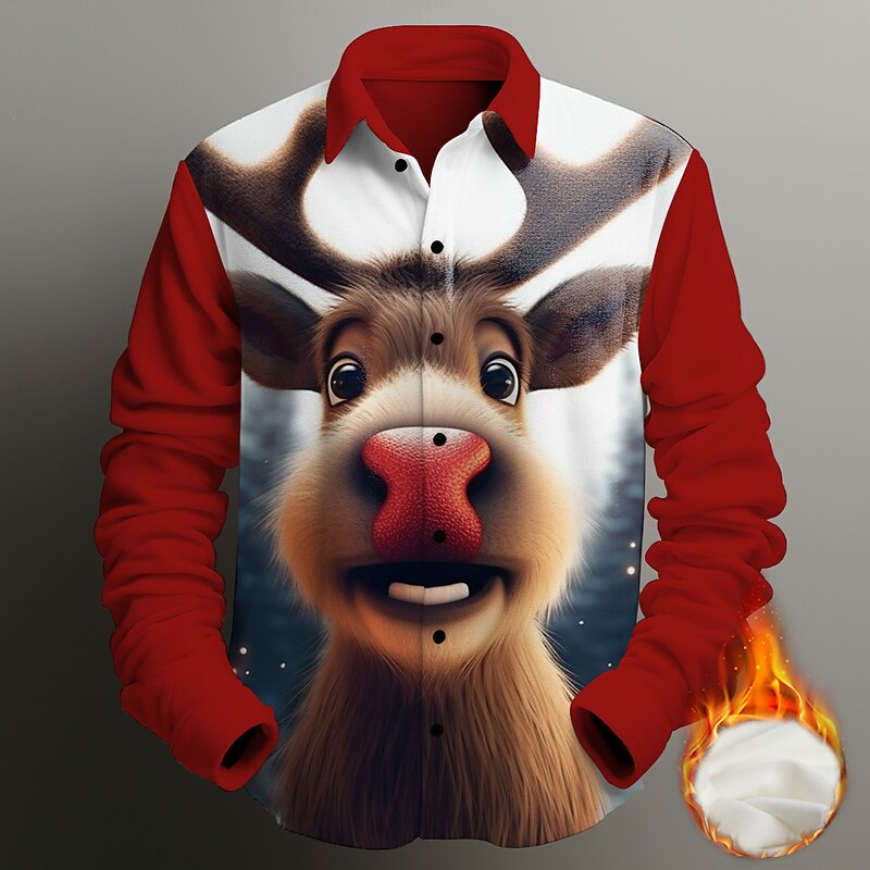 More information about Christmas Men's Christmas animal Printed Shirts Casual Daily Wear Vacation Going out Fall & Winter Turndown Long Sleeve Dark Red, Red, Royal Blue S, M, L Shirt