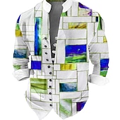 Men's Color Block Geometric Pattern Geometry Shirt Button Up Shirt Long Sleeve Fashion Streetwear Designer Outdoor Casual Daily Summer Spring Fall Stand Collar Print Light Green Blue Purple Green Gray 10